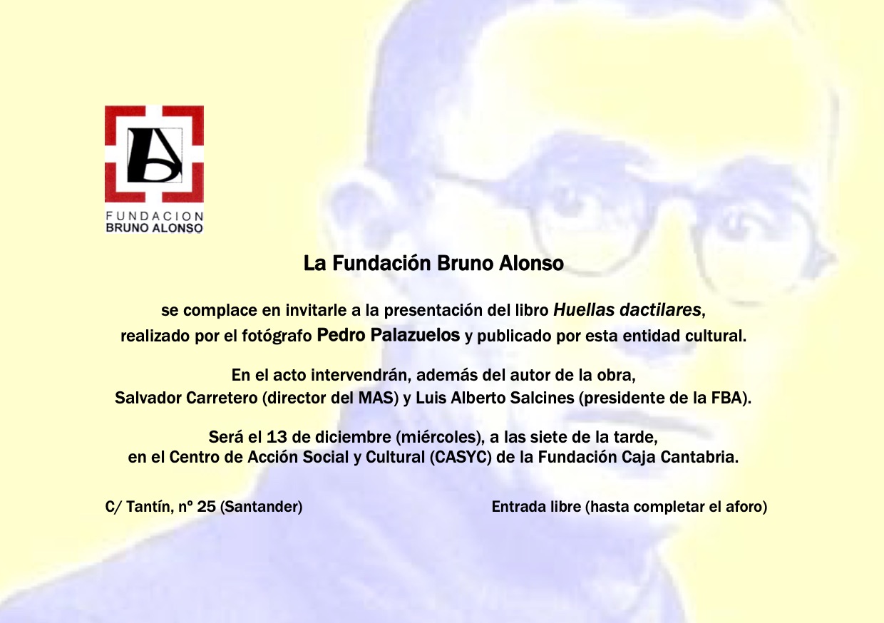 La Fundación Bruno Alonso organiza la presentación del libro “Huellas dactilares”, realizado por el fotógrafo Pedro Palazuelos y publicado por esta entidad cultural.