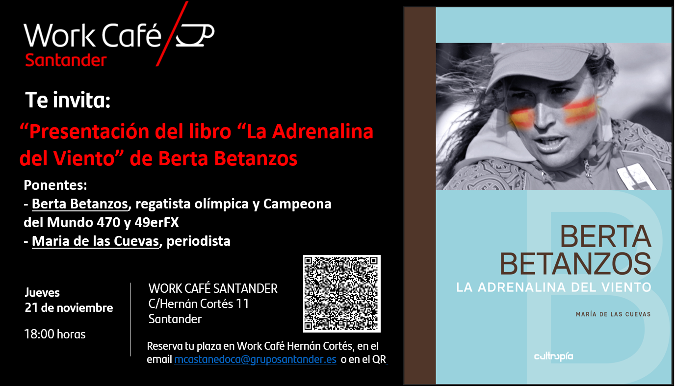 El Work Café Santander de la calle Hernán Cortés acoge la presentación del libro “La adrenalina del viento”, de Berta Betanzos.