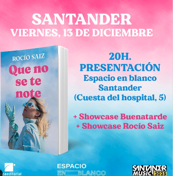 El viernes 13 de diciembre a las 20 horas, Espacio en Blanco Santander, en colaboración con el Santander Music 2025, acoge la presentación del libro "Que no se te note" de la cantante y escritora Rocío Saiz.