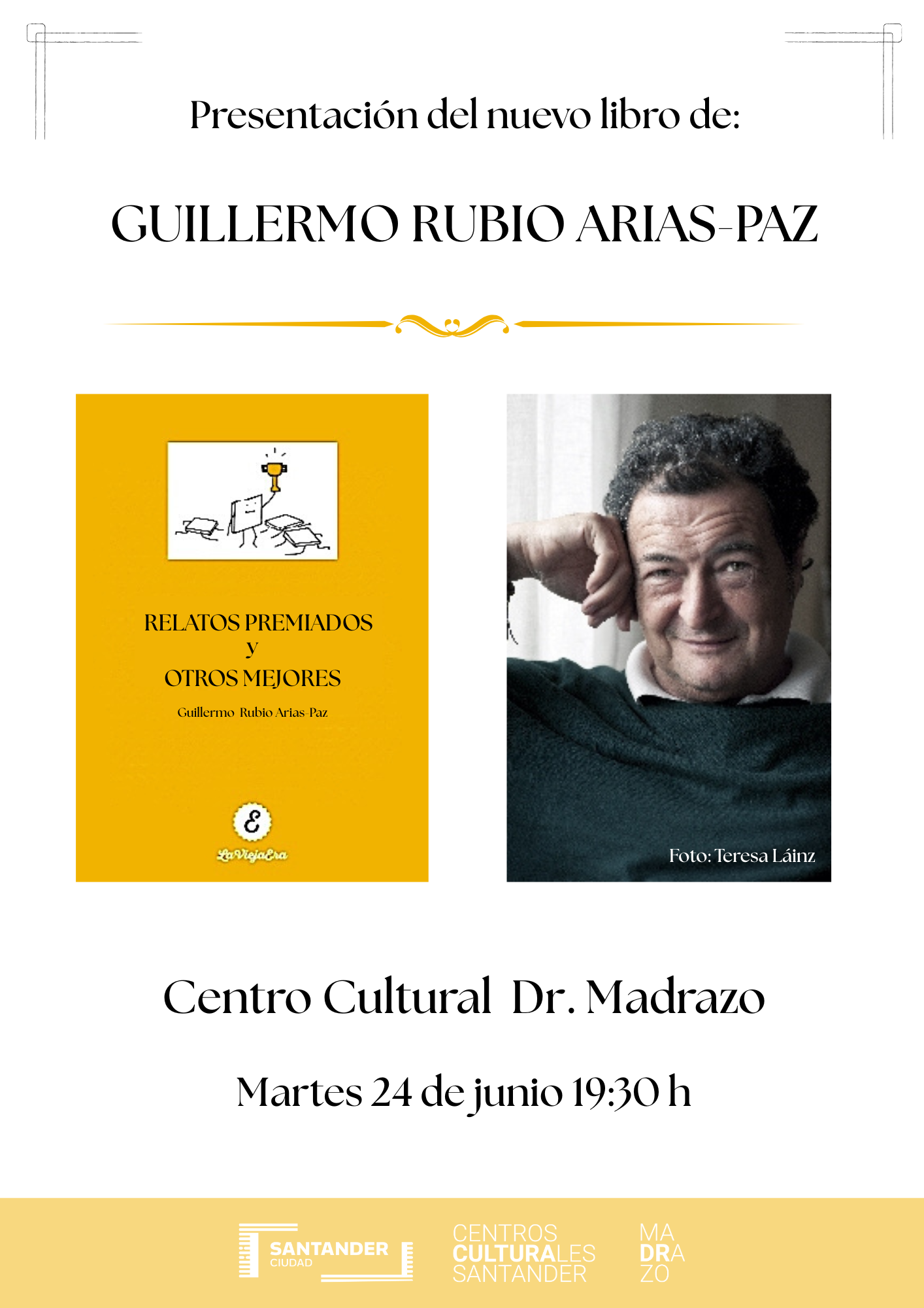 El martes, 24 de junio, a las 19:30 h, el centro cultural Doctor Madrazo acoge la presentación del libro “Relatos premiados y otros mejores”, a cargo de su autor, Guillermo Rubio Arias-Paz.