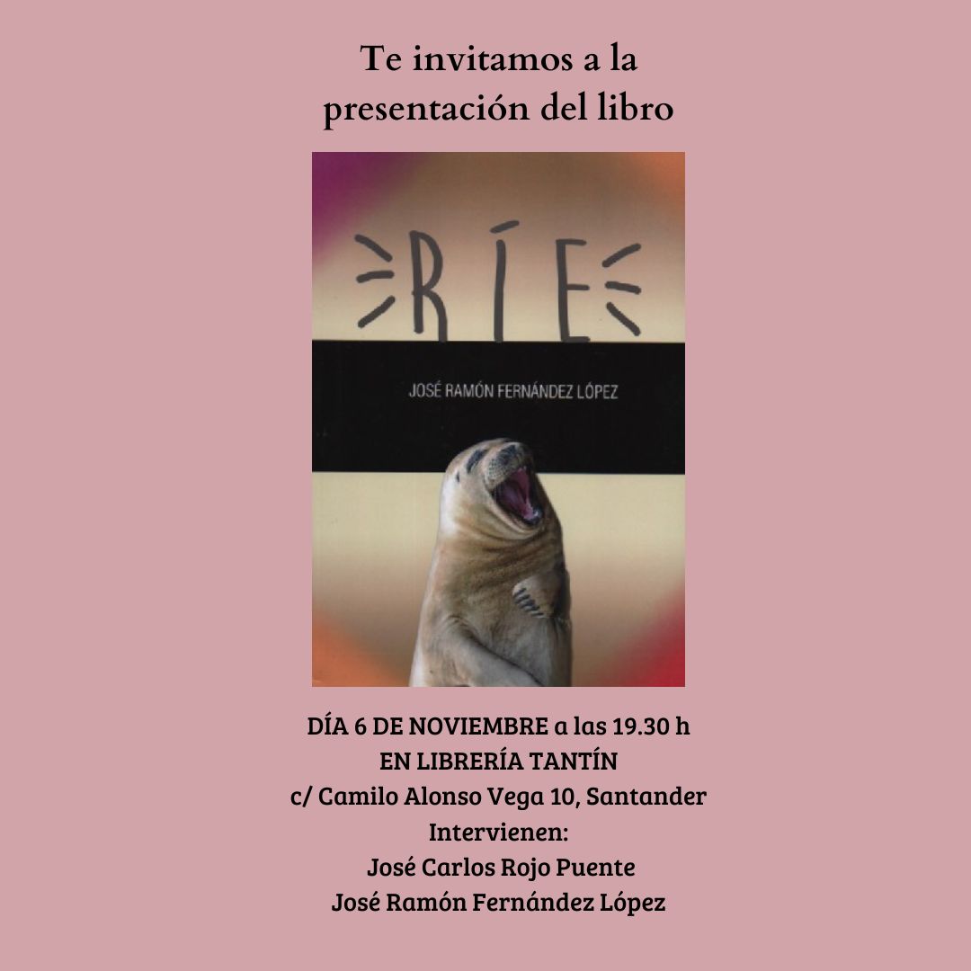 El miércoles 6 de noviembre a las 19.30 h, la librería Ediciones Tantín acoge la presentación del libro “Ríe”, de José Ramón Fernández López.