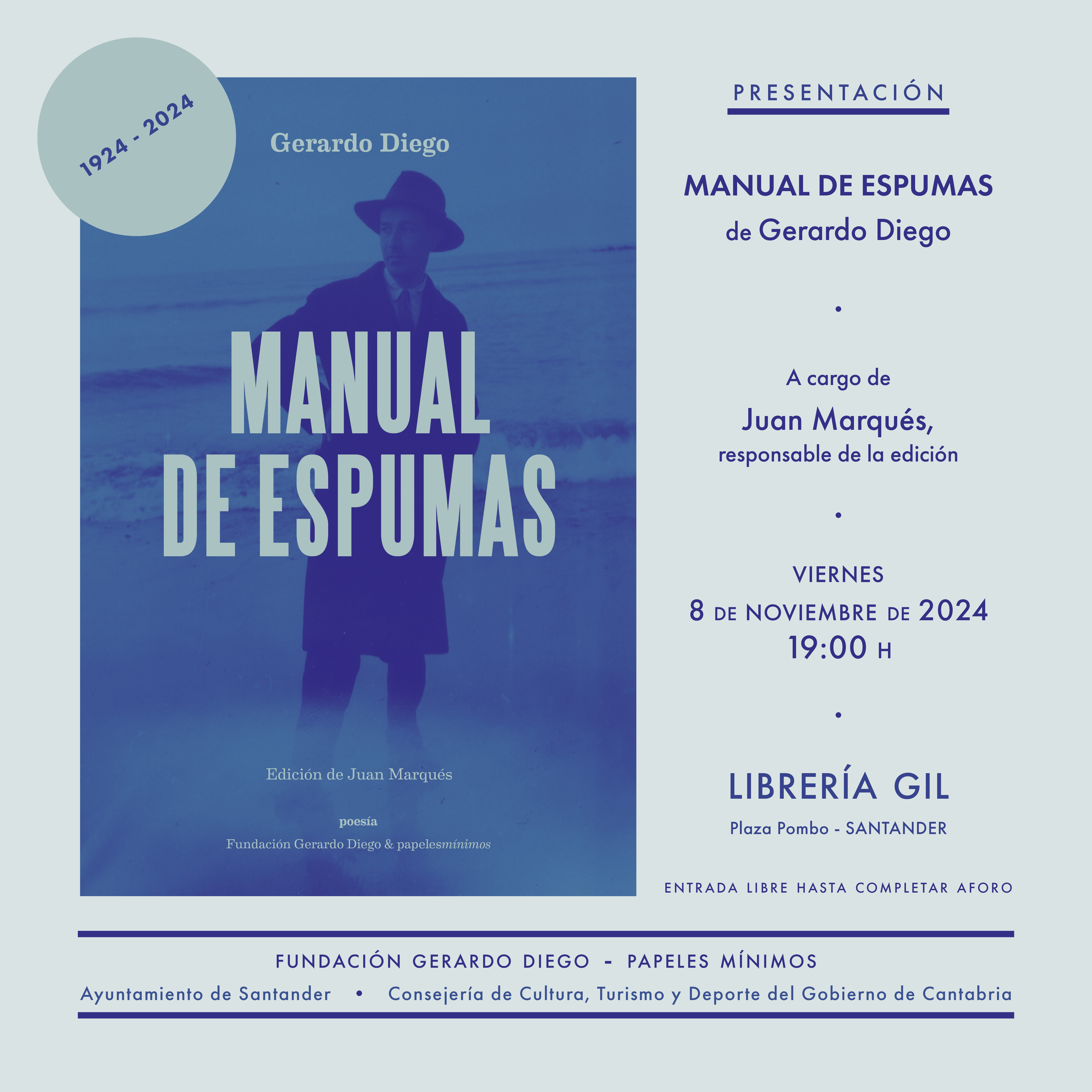 La presentación tendrá lugar el viernes 8 de noviembre a las 19:00h, con la presencia del responsable de la edición Juan Marqués, acompañado por Andrea Puente, directora de la Fundación Gerardo Diego.