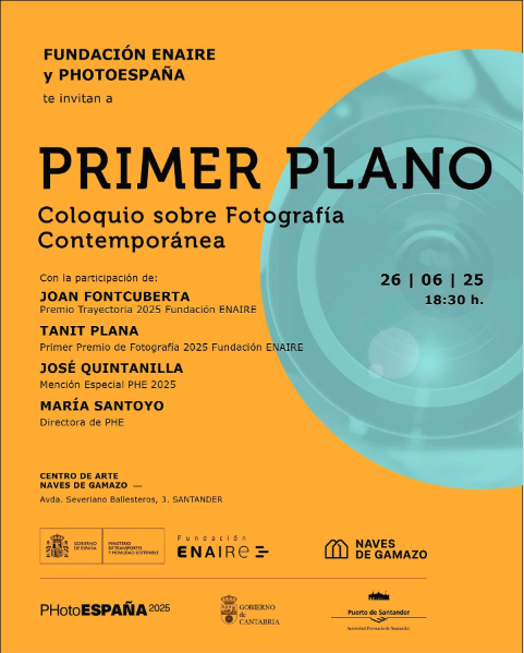 El centro de arte Naves de Gamazo acoge este coloquio sobre fotografía contemporánea, con las intervenciones de Joan Fontcuberta, Premio Trayectoria 2025 de Fundación ENAIRE, Tanit Plana, Primer Premio de Fotografía 2025 de Fundación ENAIRE, José Quintanilla, Mención Especial PhotoEspaña y María Santoyo, directora de PhotoEspaña.