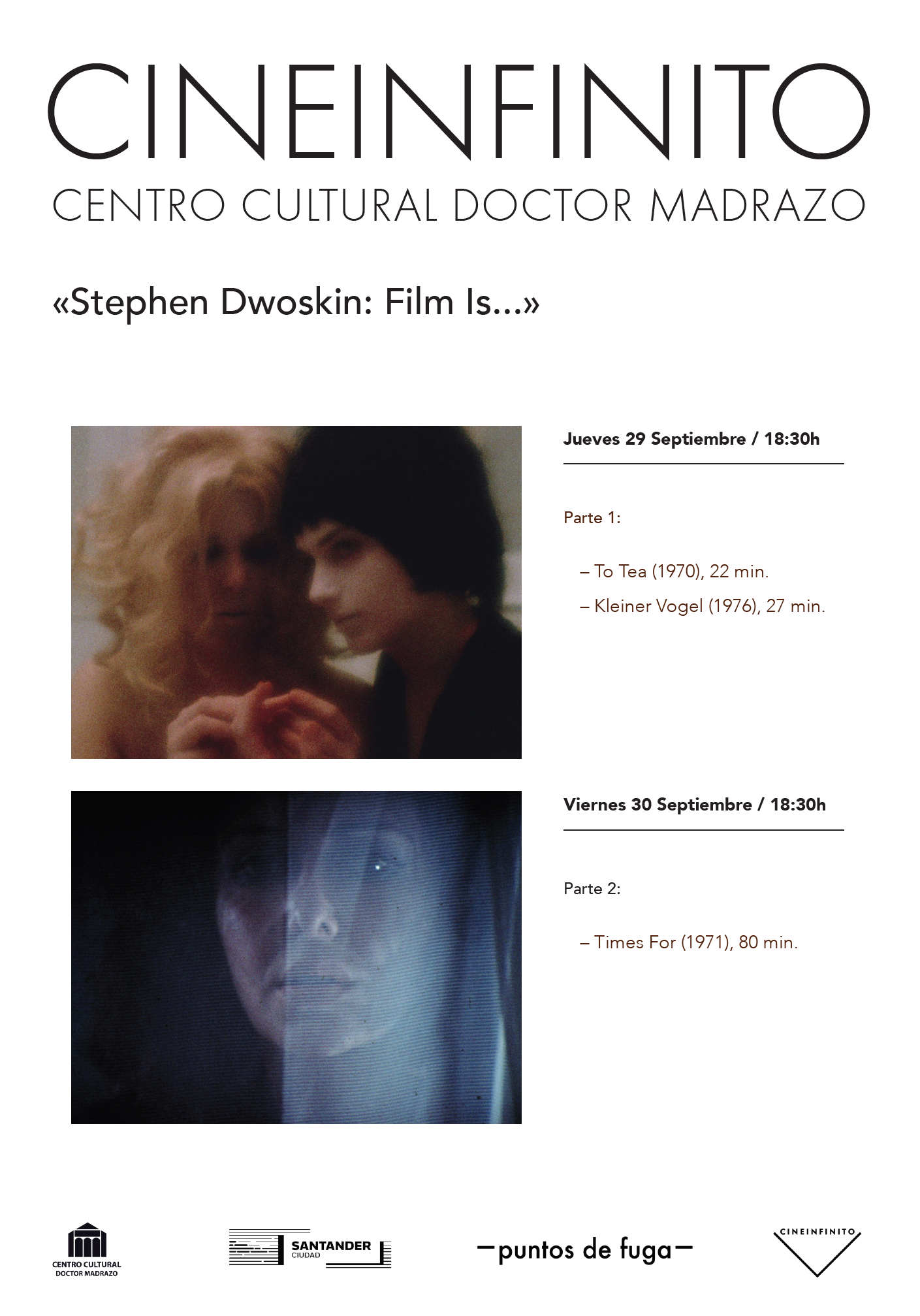 Cineinfinito continúa su ciclo “Tierra de Nadie” con un programa doble en torno a la figura de Stephen Dwoskin. La primera sesión tendrá lugar el jueves, 29 de septiembre, y la segunda el viernes, 30 de septiembre, a las 18:30h. Este programa se realizará en colaboración con "Puntos de Fuga", la Muestra Internacional de Cine de Santander.