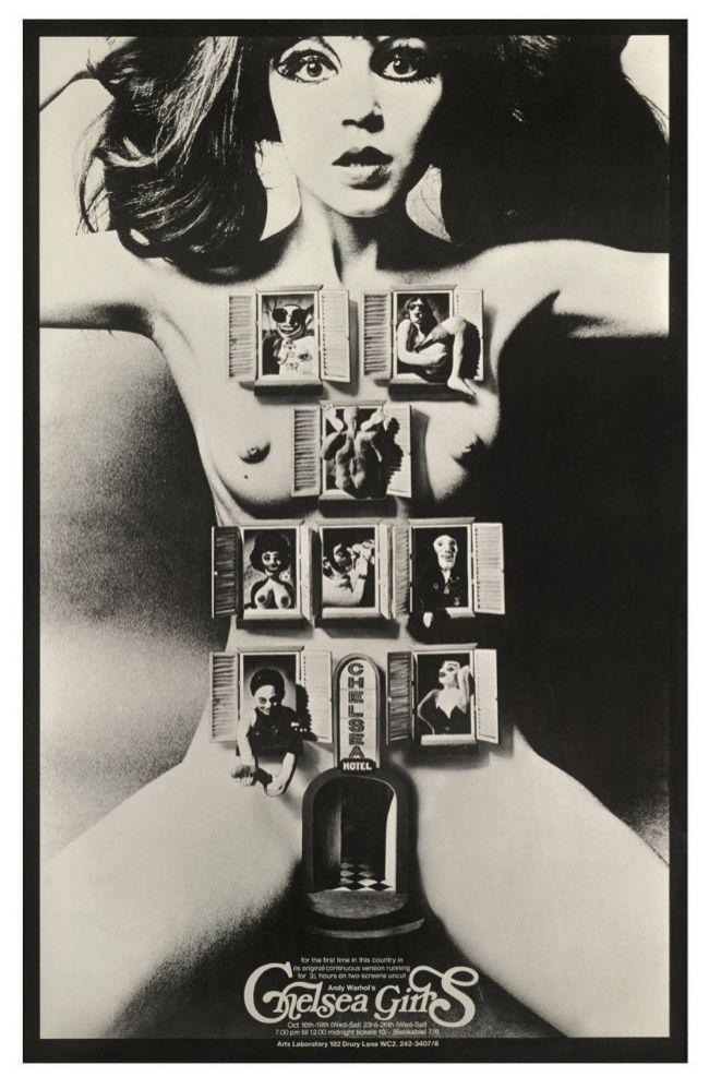 Consiste en dos películas de 16 mm proyectadas simultáneamente una al lado de la otra. Los proyeccionistas debían elegir cómo combinar los filmes, qué banda sonora dejaban activa y cuál muda y cuándo, transformándose de algún modo en co-autores de una obra mutante. "Chelsea Girls" —lo más cerca que alguna vez estuvo Warhol del cine narrativo— puede ser vista hoy como un documento antropológico sobre la legendaria escena underground neoyorquina de la época. Impulsado por Jonas Mekas, Warhol se sumergió en el hotel de la bohemia de Manhattan y registró doce historias o, más precisamente, “momentos”, como si espiara por el ojo de la cerradura, llevando hasta sus límites la concepción del cine como acto voyeurista. (FILMAFFINITY)