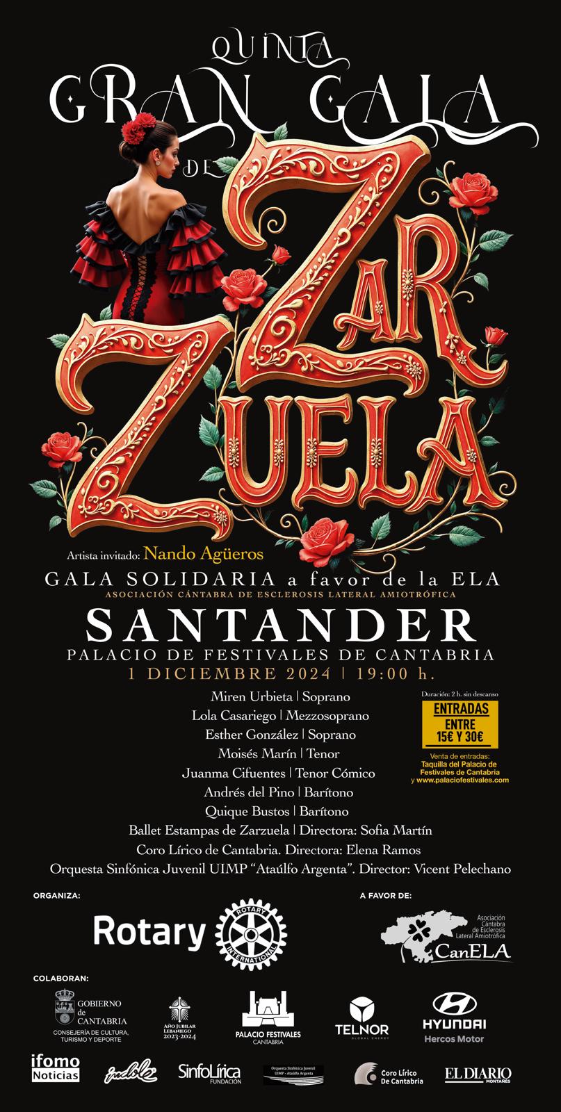 Gala solidaria a favor de la lucha contra la ELA, en la que colaboran los Clubes Rotarios de Cantabria, que se celebrará el domingo 1 de diciembre en el Palacio de Festivales de Santander a las 19:00 h.