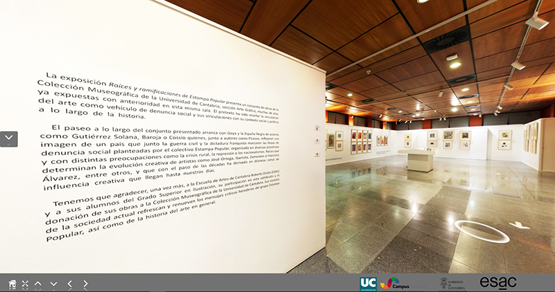 En esta ocasión se trata de dar acceso a la última exhibición desarrollada en la Sala de Exposiciones del Paraninfo de la UC, con 83 estampas expuestas que tuvieron como hilo conductor el arte como vehículo de denuncia y crítica social en nuestro país desde el siglo XIX hasta nuestros días, con el colectivo artístico Estampa Popular como referente central. Obras de artistas como Francisco de Goya, Picasso, Gutiérrez Solana, Ibarrola, Saura o Equipo Crónica compartieron espacio expositivo con las estampas realizadas y donadas a la UC por el alumnado de ciclo de grado superior en Ilustración de la ESAC (Escuela de Artes de Cantabria Roberto Orallo).