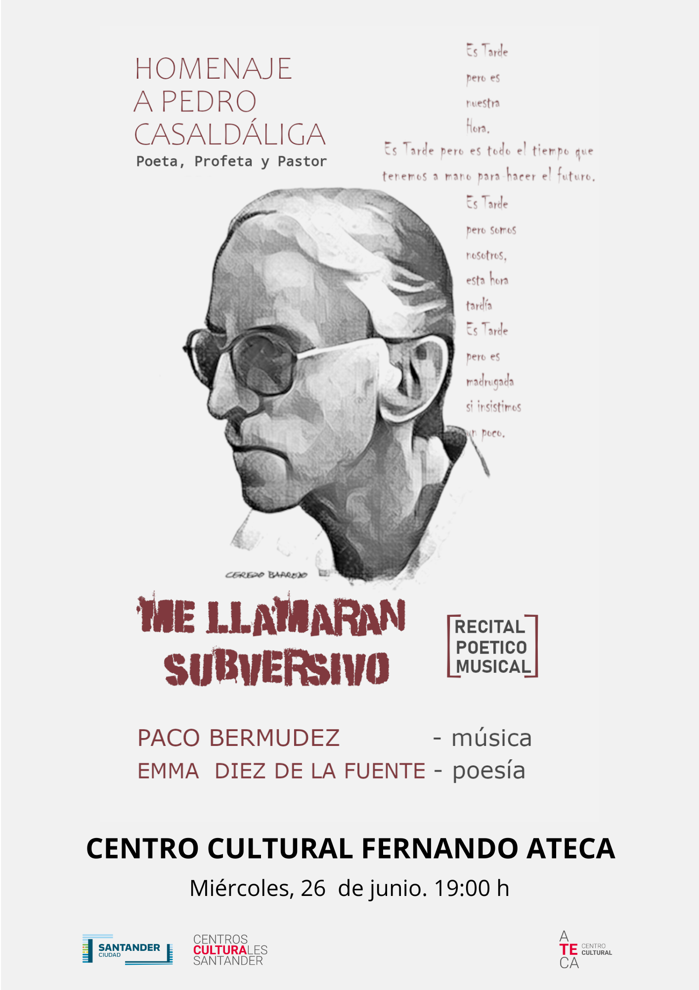El 26 de junio, a las 19:00 h, el Centro Cultural Fernando Ateca, acogerá el recital poético "Me Llamarán Subversivo", basado en la vida y obra de Pedro Casaldáliga.