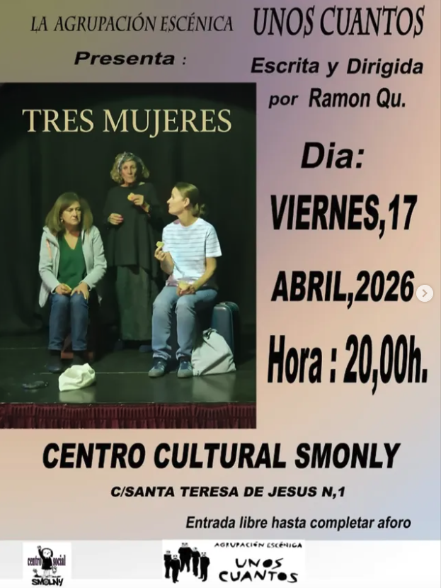 La Agrupación Escénica Unos Cuantos representa la obra “Tres mujeres”, a las 20:00 horas del próximo 17 de abril, en el Centro Social Smolny.