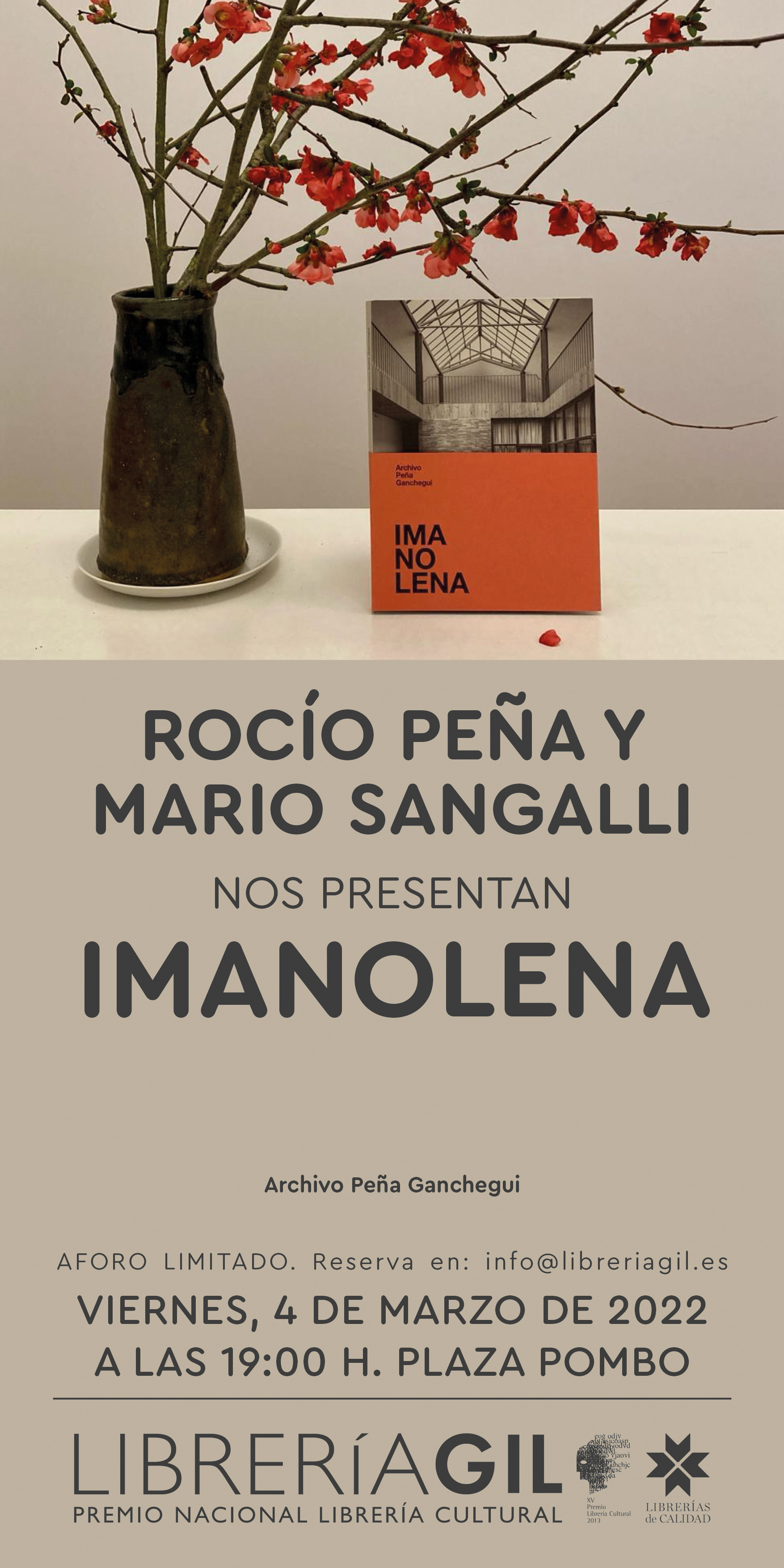 Rocío Peña y Mario Sangalli presentan el libro “Imanolena” en Librería Gil el viernes 4 de marzo a las 19:00 horas. Reservas en info@libreriagil.es .