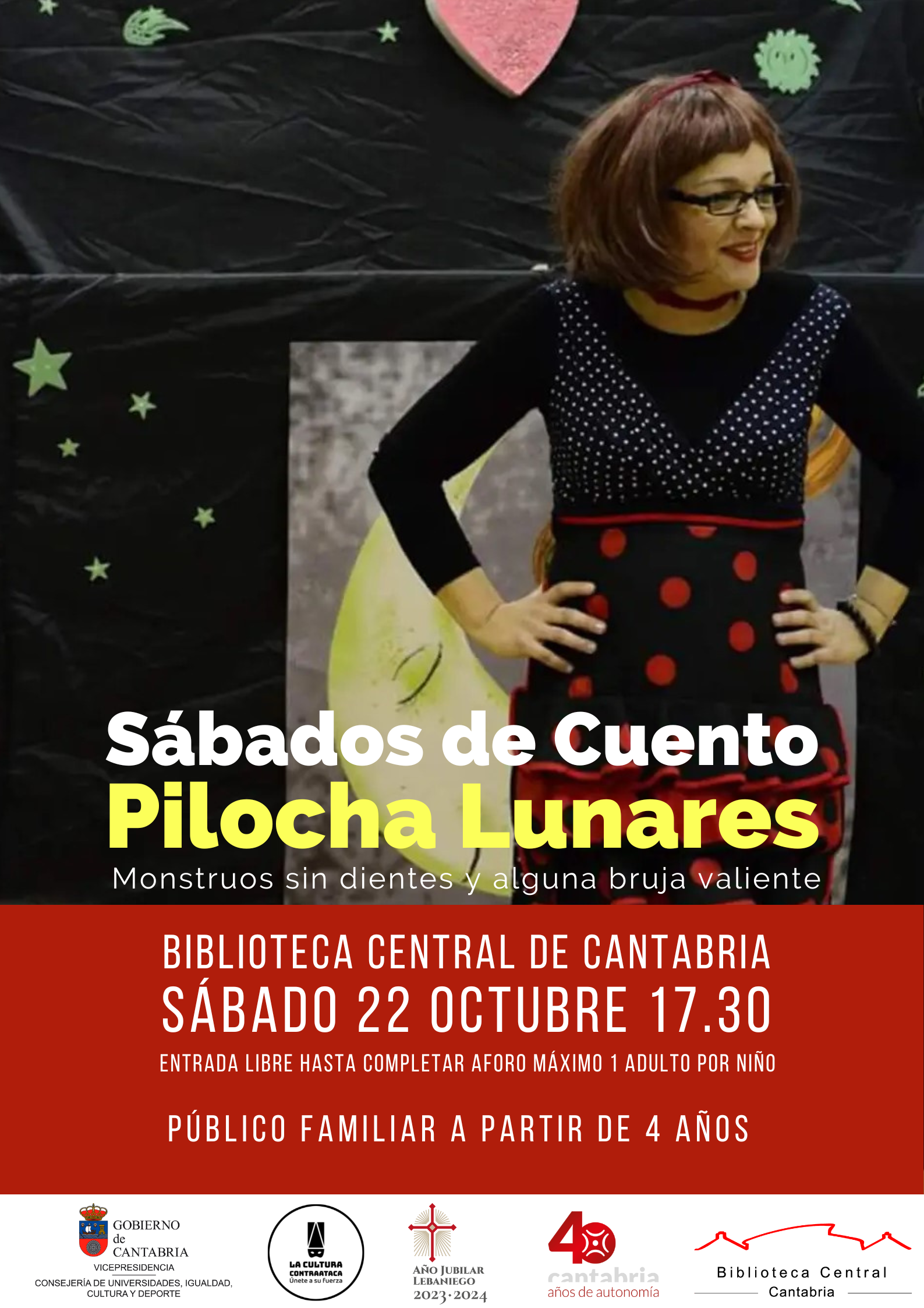 La Biblioteca Central de Cantabria, dentro del ciclo Sábados de Cuento, recibe la visita de Pilocha Lunares, quien nos contará historias de “Monstruos sin dientes y alguna bruja valiente”.