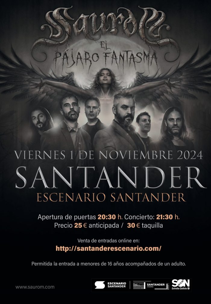 Noviembre se abre en Escenario Santander con el concierto de los gaditanos Saurom quienes, tras regresar de América, continúan con la gira española de presentación de su último disco, ‘El pájaro fantasma’. Ofrecerán, este viernes, 1 de noviembre, un espectáculo de casi tres horas de duración que comenzará a las 21:30h y en el que demostrarán por qué ya están entre los más grandes del folk metal europeo.