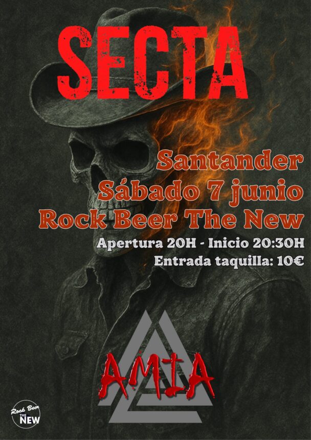 Conciertos de las bandas Secta y Amia en la sala Rock Beer the New el sábado 7 de junio a las 20:30h (apertura de puertas a las 20:00h).