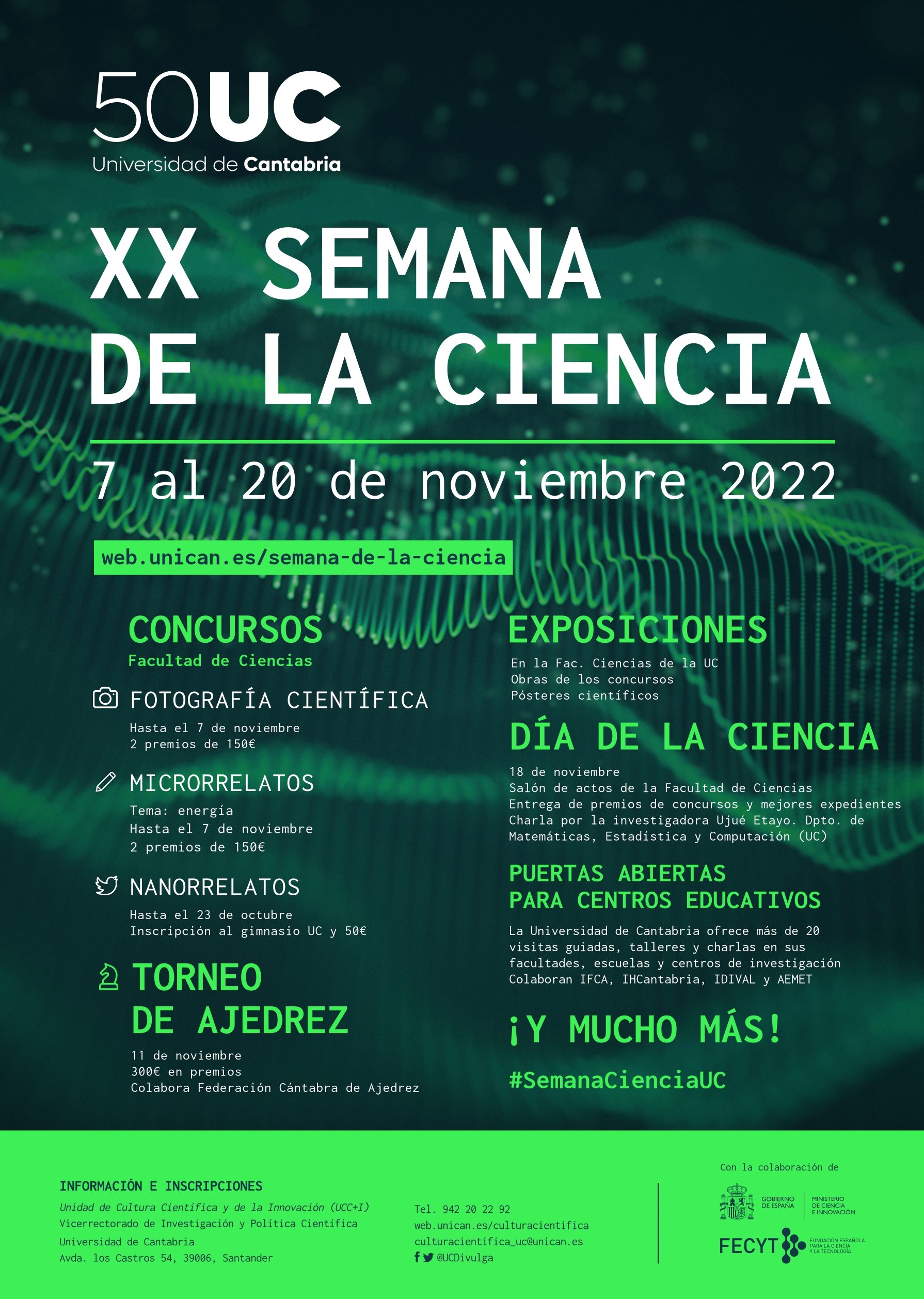 INSCRIPCIÓN A LAS ACTIVIDADES E INFORMACIÓN SOBRE LAS BASES A LOS CONCURSOS: https://web.unican.es/semana-de-la-ciencia