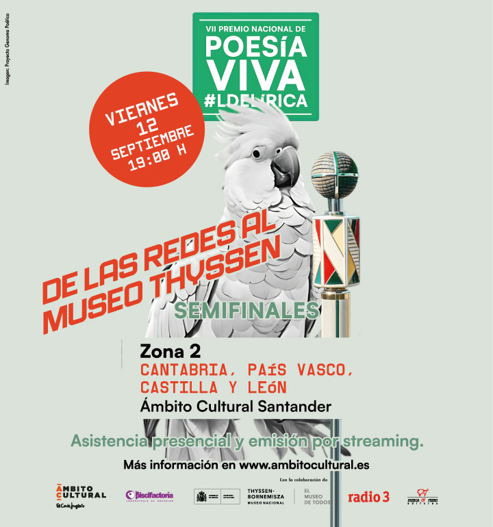 La VII edición del Premio Nacional de Poesía Viva #LdeLírica hace parada en la Zona 2 y se cita con los semifinalistas el viernes 12 de septiembre a las 19:00 h en la sala de Ámbito Cultural Santander.