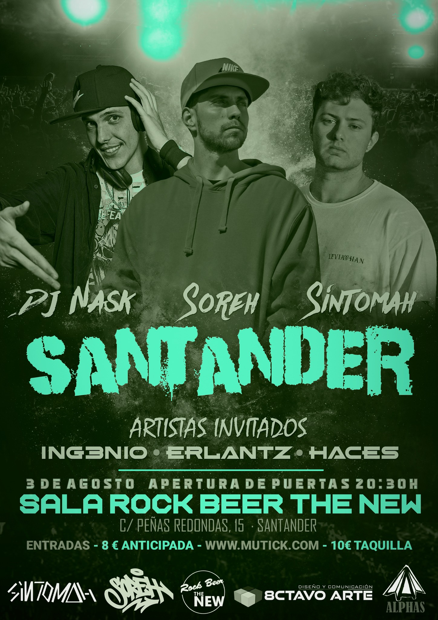 En esta ocasión lo acompañará Dj P y el veterano Dj Nask, un artista ya reconocido en su ciudad por el movimiento que genera en la escena regional urbana actual. También desde Palencia llega Síntomah, un jovencísimo artista que ya ha pisado los escenarios de varias ciudades compartiendo rap cargado de mensaje y de sentimiento.