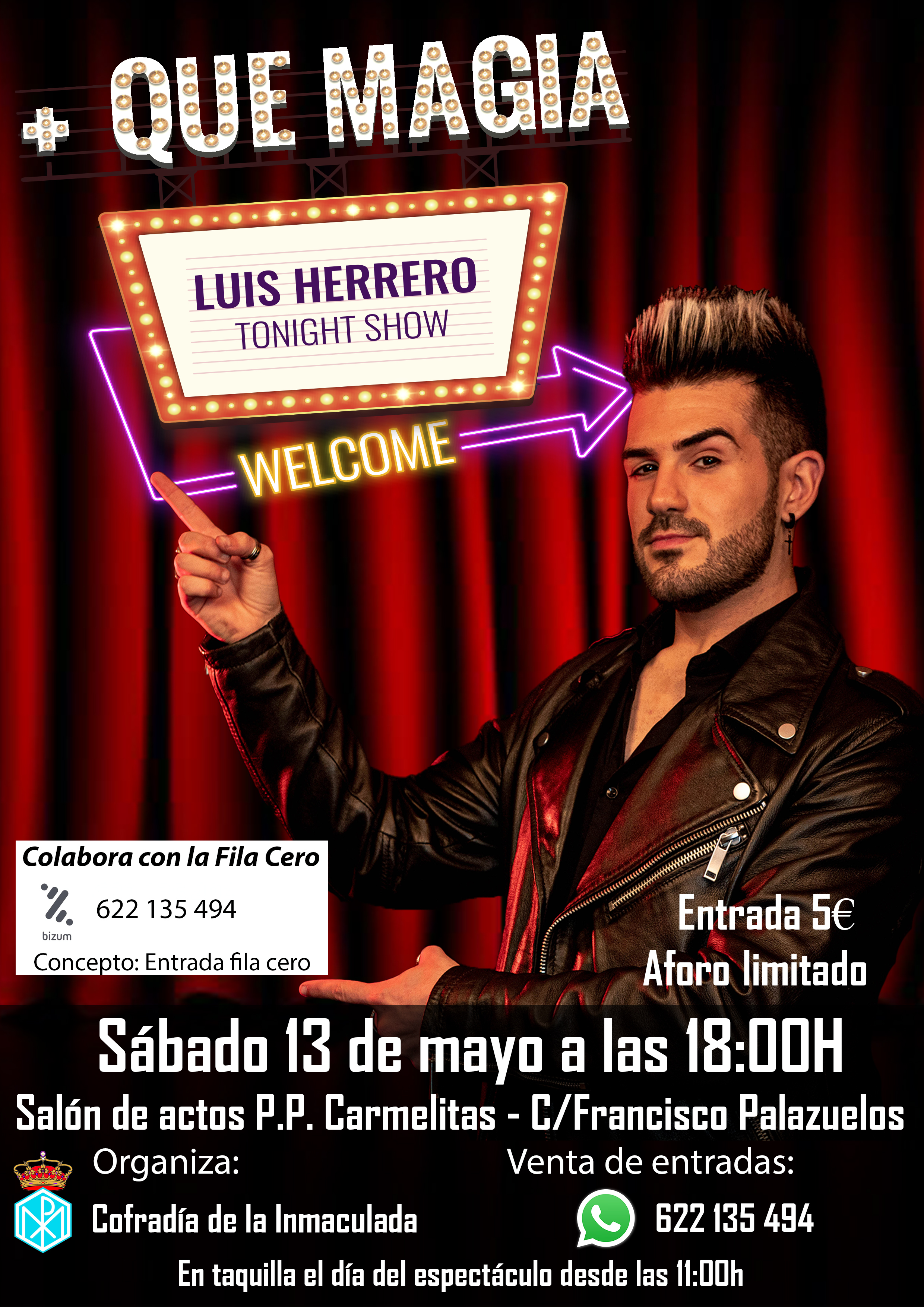 Luis Herrero presenta el show “+ Que Magia” el sábado 13 de mayo a las 18:00 h en el salón de actos de los Carmelitas (C/Francisco Palazuelos).