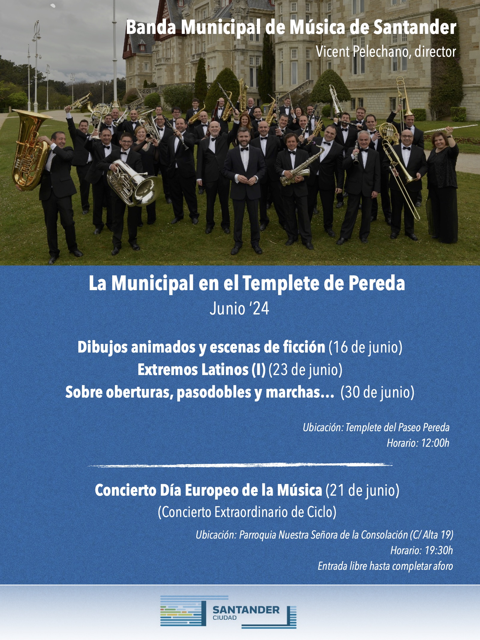 La Banda Municipal de Música de Santander ofrece este mes de junio un ciclo de conciertos en el Templete de los Jardines de Pereda.