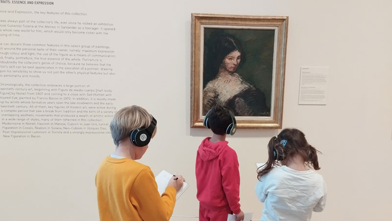 Retratos sonoros es el resultado de un proceso de creación que comenzó con la actividad de motivación que el alumnado realizó en casa con su familia y en el aula con sus compañeros. Después, disfrutaron de las obras en la sala de exposiciones, activando todos sus sentidos y poniendo en práctica sus habilidades emocionales y sociales (identificación y expresión emocional, empatía, asertividad, escucha activa, etc.) A partir de ahí, cada centro educativo ha creado de manera colaborativa, un retrato físico de un habitante del planeta Tierra del año 3024, además de otro retrato sonoro que lo describa. Los visitantes podrán ver tanto los retratos físicos como dibujar ellos mismos su versión a partir de la descripción del retrato sonoro. De esta forma constatarán que cada uno entendemos la realidad a nuestra manera, en función de nuestras experiencias, vivencias y recuerdos.
