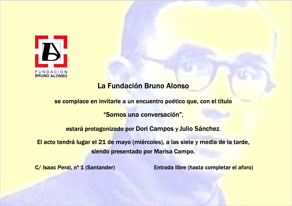 La Fundación Bruno Alonso organiza este encuentro poético que, con el título “Somos una conversación”, estará protagonizado por Dori Campos y Julio Sánchez.