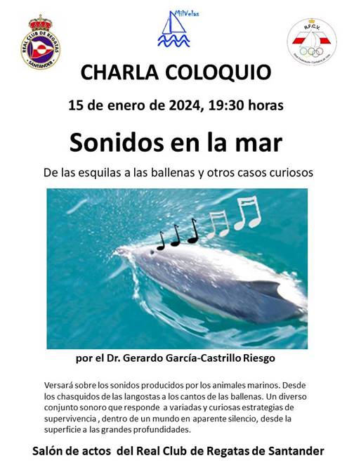 El lunes 15 de enero a 19:30 h, en el salón de actos, 2ª planta del Real Club de Regatas de Santander tendrá lugar la conferencia “Sonidos de la mar. De las esquilas a las ballenas y otros casos curiosos”, impartida por Gerardo García Castrillo, ex director del Museo Marítimo del Cantábrico.