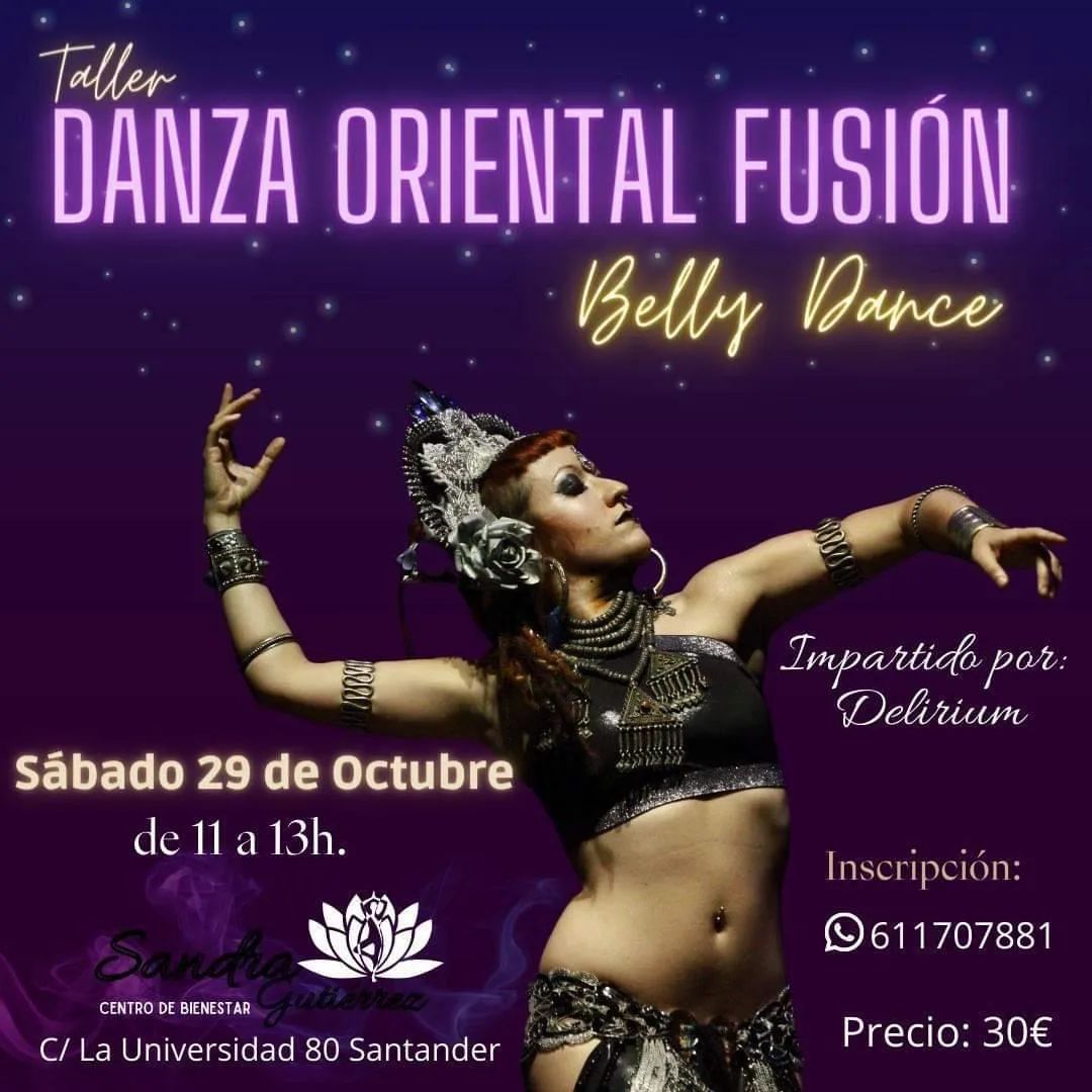 Taller impartido por Delirium Fusion en el que los participantes se introducirán en este baile que fusiona oriente y occidente desde el control corporal, la disociación de movimientos, y la mezcla de diferentes estilos de música y de danza. Parte de movimientos de bellydance fusionándolos con danzas urbanas, contemporáneas…