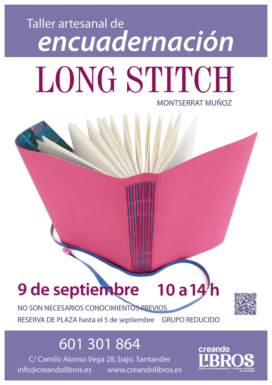 Web del organizador: https://creandolibros.es/encuadernacion-y-acuarela-en-santander-2/taller-de-encuadernacion-costura-long-stitch/