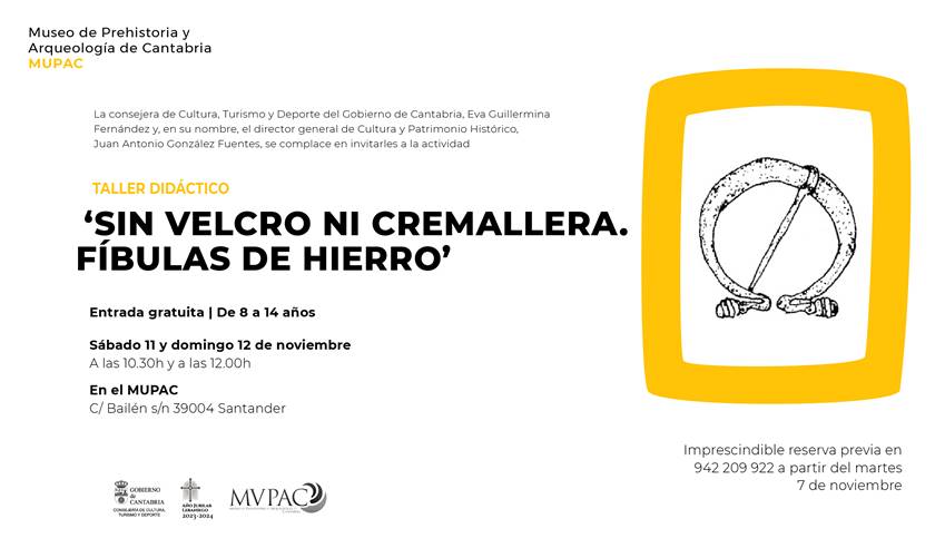 El Museo de Prehistoria y Arqueología de Cantabria (MUPAC) organiza el taller didáctico “Sin velcro ni cremallera. Fíbulas de hierro” dirigido a niñas y niños de 8 a 14 años.