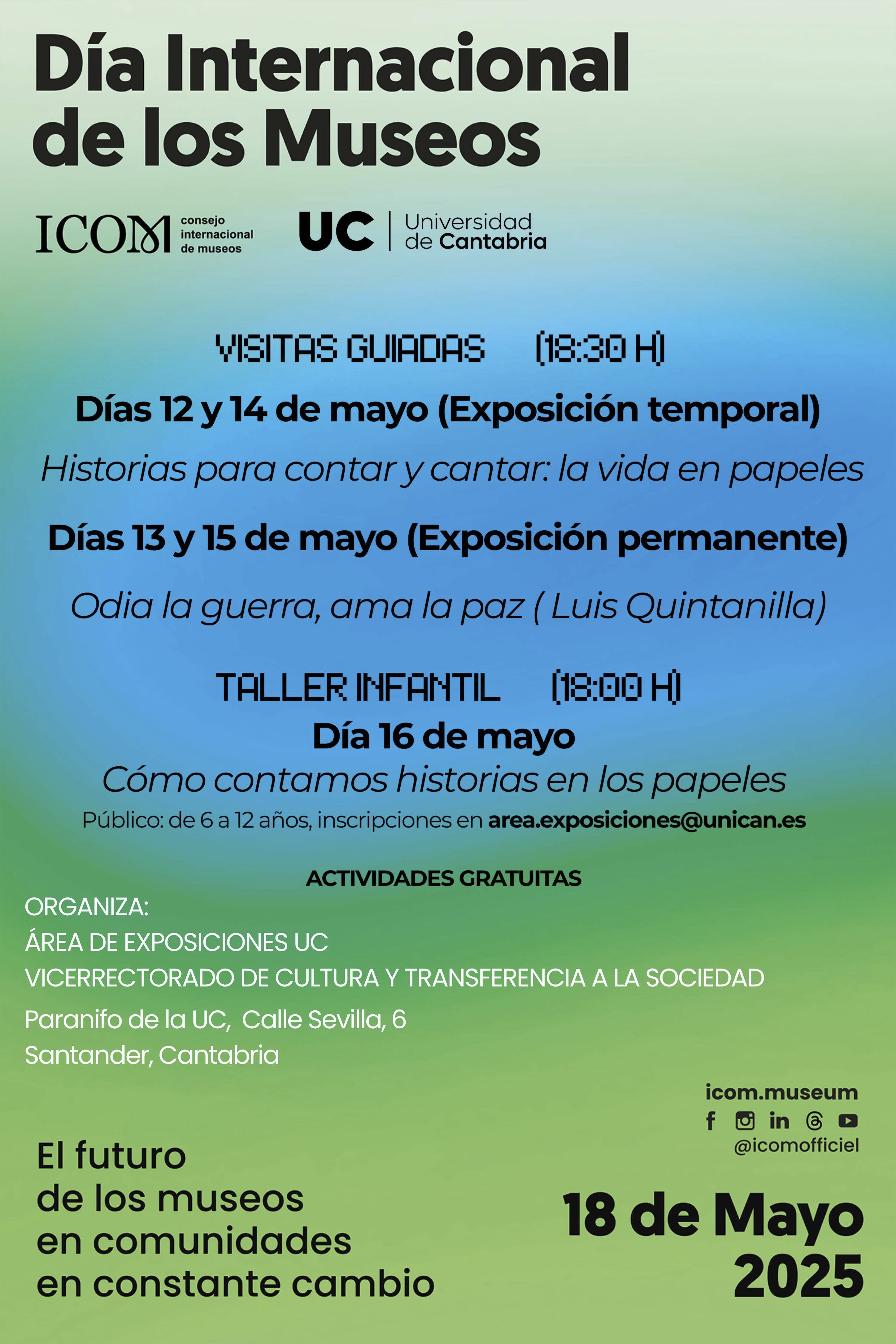 Estas actividades han sido organizadas por el Área de Exposiciones del Vicerrectorado de Cultura y Transferencia a la Sociedad de la UC, como parte de la programación internacional del DIM 2025, que este año tiene por lema El futuro de los museos en comunidades en constante cambio.