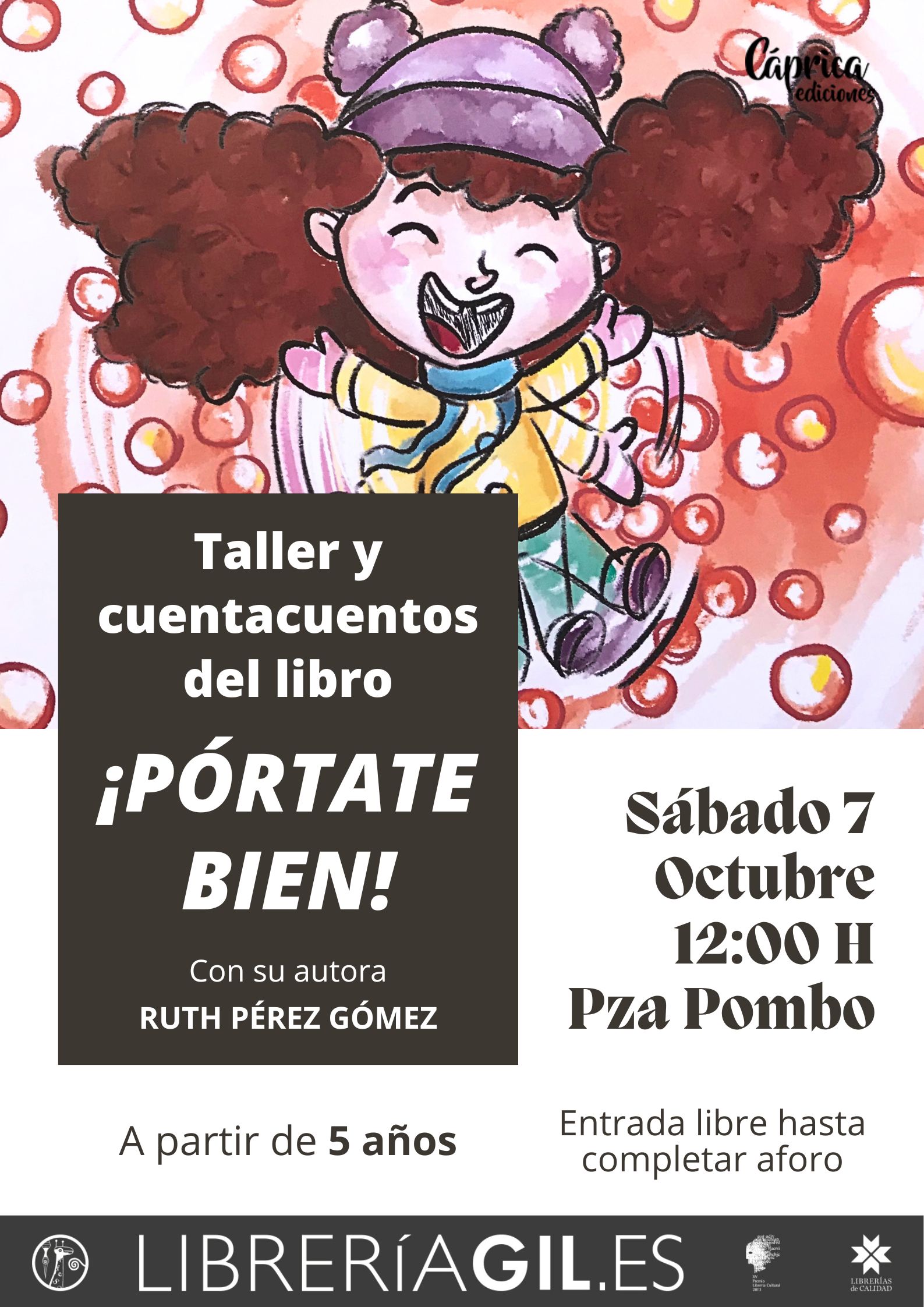 El sábado 7 de octubre a las 12:00 h., la Librería Gil organiza un cuentacuentos y taller del libro “¡Pórtate bien!”, con su autora Ruth Pérez Gómez. La actividad está dirigida a niñas y niños a partir de 5 años. Entrada libre hasta completar aforo.