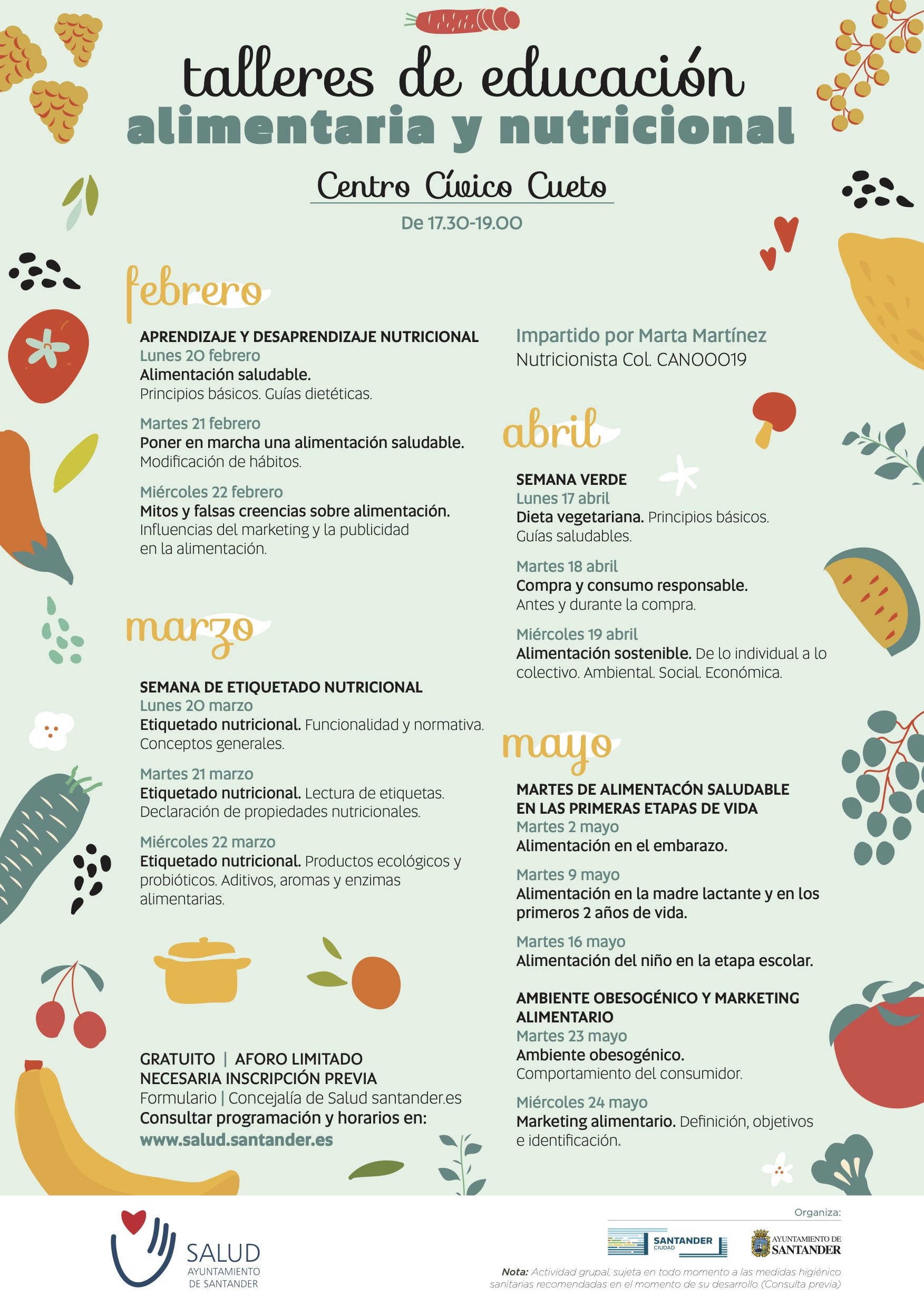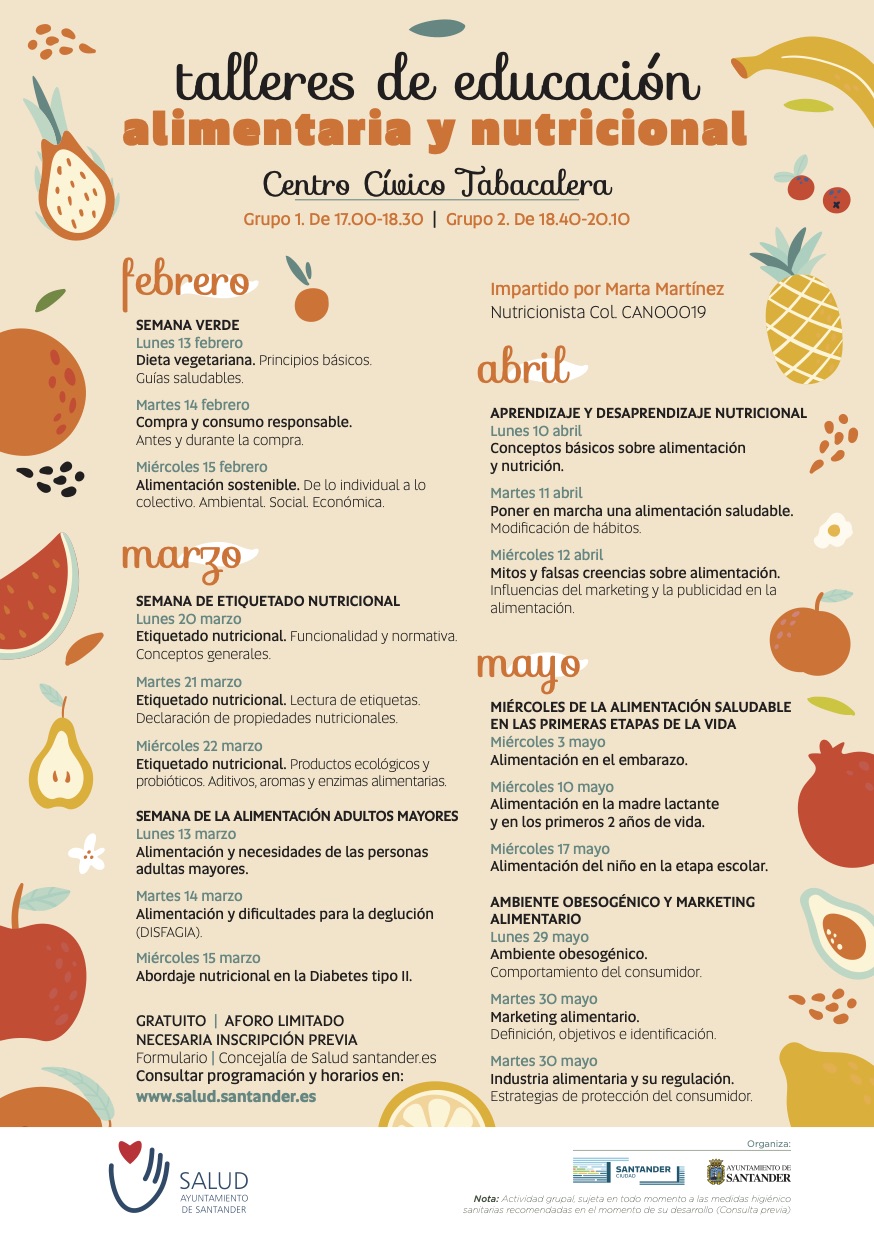 El Servicio de Salud del Ayuntamiento de Santander organiza, de febrero a mayo, talleres de educación alimentaria y nutricional en los centros cívicos de Cueto, Meteorológico y Tabacalera.