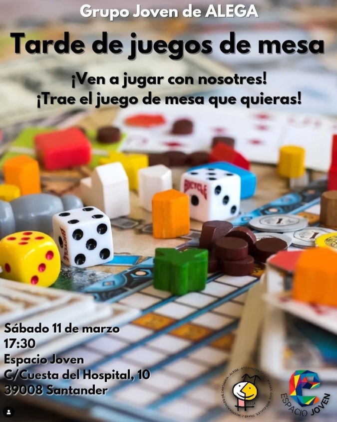 Tarde de juegos de mesa en Espacio Joven, organizada por Alega Cantabria. Puedes llevar tu propio juego.