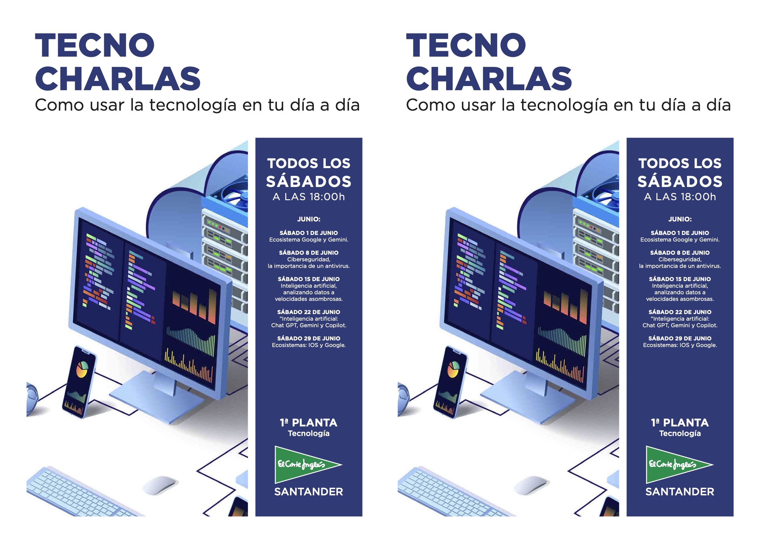 Todos los sábados del mes de junio a las 18:00h, El Corte Inglés ofrece “Tecnocharlas” para aprender a utilizar la tecnología en el día a día.