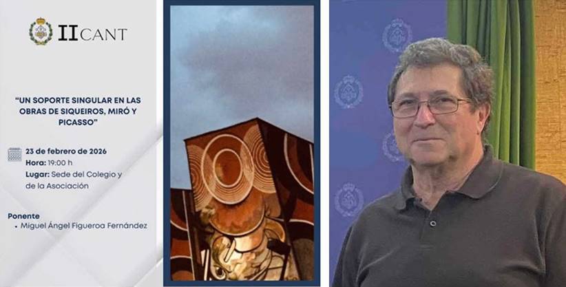 El lunes 23 de enero a las 19,00 h en el Colegio de Ingenieros Industriales (c/ Hernán Cortés nº 49, Santander) tendrá lugar la conferencia "Un soporte singular en las obras de Siqueiros, Miró y Picasso", impartida por Miguel Ángel Figueroa Fernández, ingeniero técnico industrial y sociólogo, con formación en Bellas Artes.