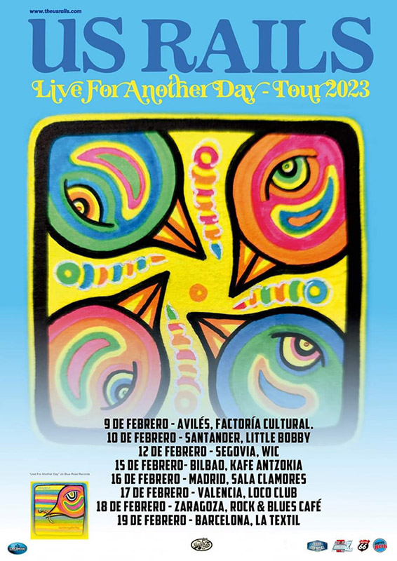 US Rails regresan a Europa con su último trabajo: Live for Another Day (Blue Rose Records, 2022). Tras la pandemia, US Rails regresaron al estudio para desengrasar sus instrumentos y registrar un nuevo disco cargado con esas armonías vocales marca de la casa. El resultado, como no podía ser de otra manera, es una sólida colección de temas de rock de raíces en la línea de luminarias como Eagles, Steve Miller Band, Lynyrd Skynyrd, Steely Dan, The Doobie Brothers, Buffalo Springsfield o Crosby, Stills, Nash & Young. Un ramillete de canciones con el sentimiento a flor de piel y la personalidad de unos músicos de raza. Folk americano, rock y rhythm & blues de raíz con el verano de Filadelfia como sello en cada una de sus creaciones.