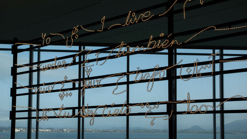 En la exposición Shilpa Gupta: Yo también vivo bajo tu cielo la voz y la poesía inundan la sala reclamando la existencia de aquellas personas que han sido silenciadas y desdibujando las fronteras que limitan el movimiento.