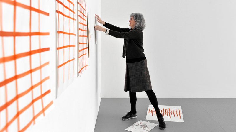 Silvia Bächli: Partitura, primera exposición institucional de la artista suiza en España reúne obras recientes que ponen en dialogo dibujos de nueva producción con otros anteriores, además de la instalación que realizó para el Pabellón Suizo de la 53.a Bienal de Venecia (2009), y una instalación mural en colaboración con Eric Hattan.