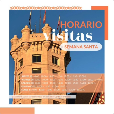 - 1 de abril - Lunes de Pascua: 10:00, 10:30, 11:00, 11:30, 12:00, 12:30, 13:00 h.