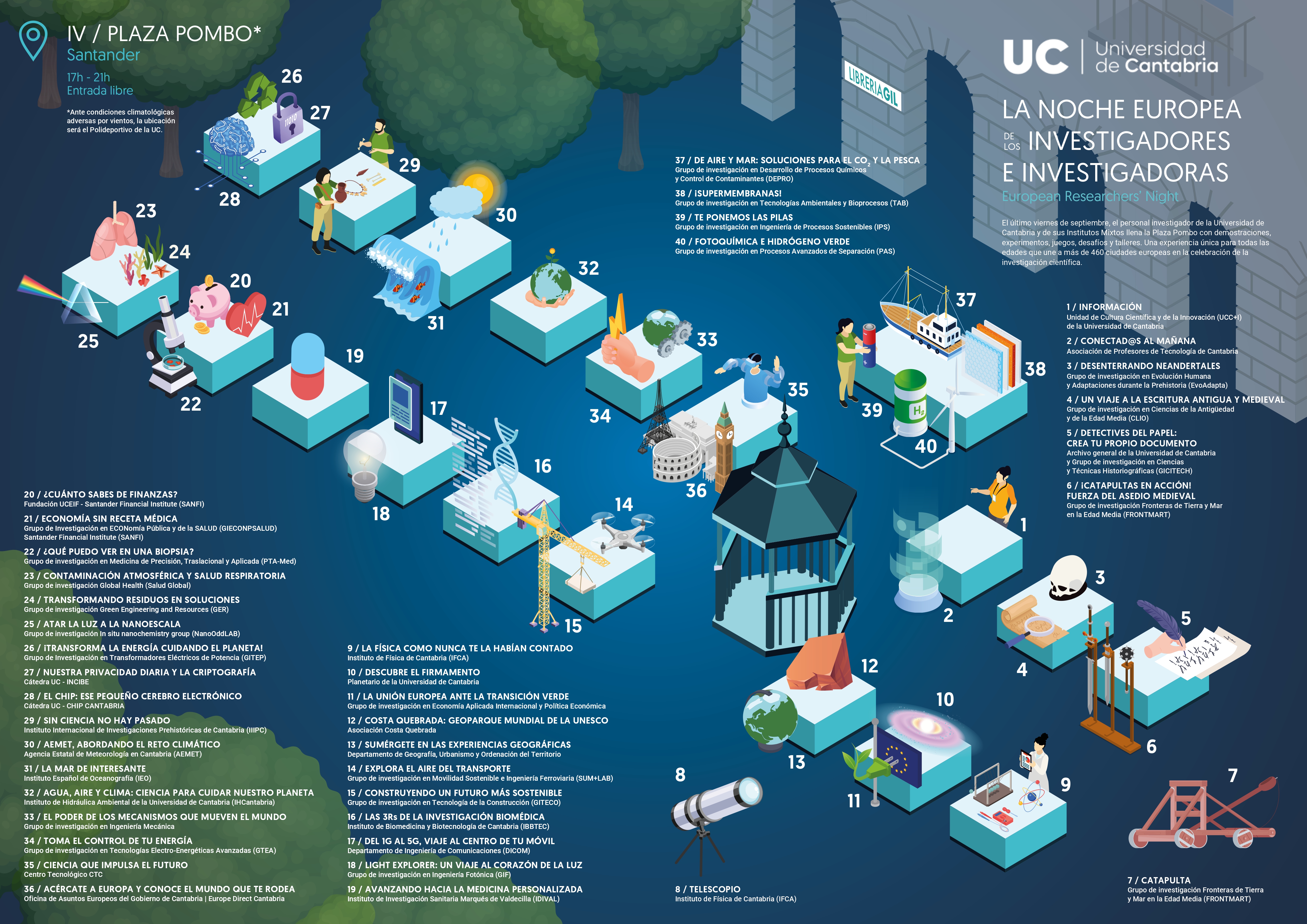 El viernes 26 de septiembre el personal investigador de la Universidad de Cantabria llena la Plaza de Pombo de Santander con demostraciones, experimentos y juegos para todas las edades de 17:00 a 21:00 h.