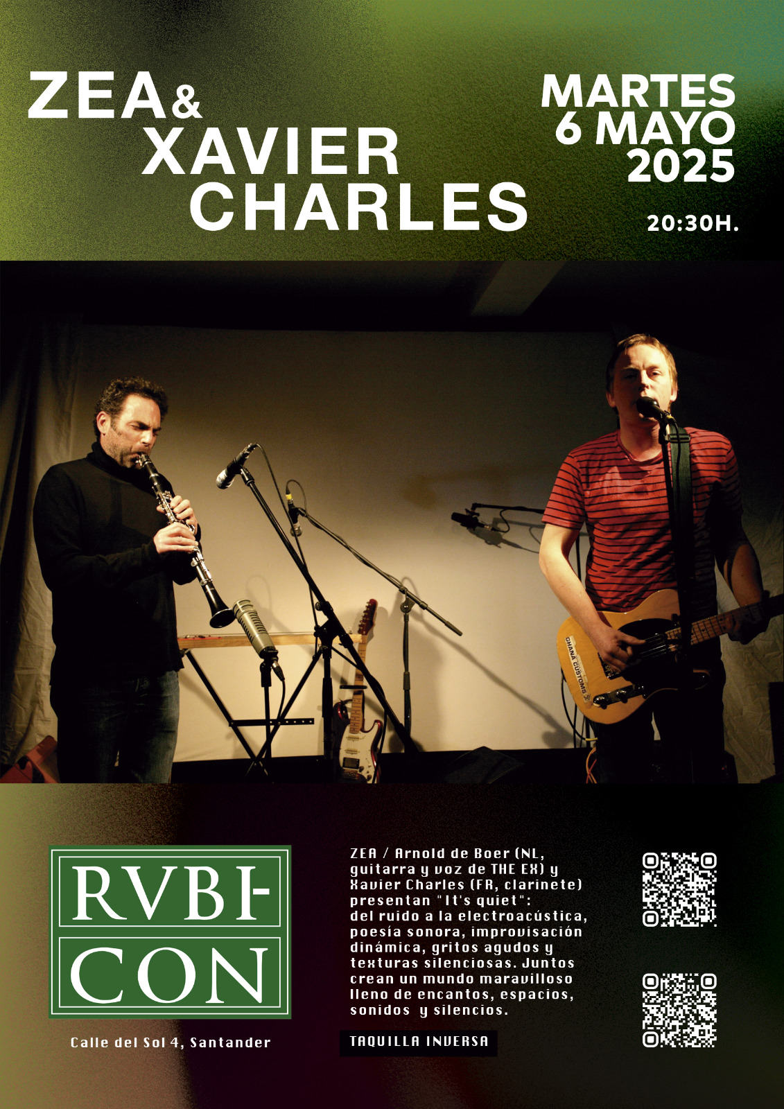 ZEA / Arnold de Boer (NL. guitarra/voz) y Xavier Charles (Fr. Clarinete) presentan “It´s quiet”: del ruido a la electroacústica, poesía sonora, improvisación dinámica, gritos agudos y texturas silenciosas.