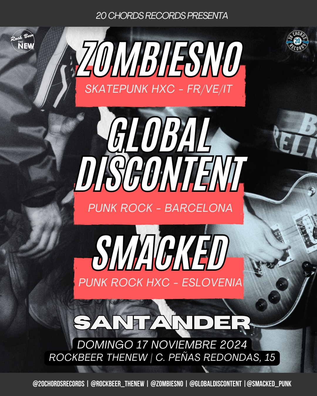 Global Discontent es una banda de punk rock reivindicativo de la escena de Barcelona, fundada en 2012. Se trata de un proyecto musical con canciones y letras críticas y reivindicativas sobre la sociedad. La banda está formada por Jairo Gomes (voz y guitarra rítmica), Dani Ventura (guitarra solista y coros), Sergio Escobar (bajo y coros) y Bruno Addiego (batería y segundas voces). Con influencias claras de grandes bandas de la escena punk rock, como RANCID o Millencolin vuelve a los escenarios con más fuerza que nunca. La banda, volvió a los escenarios de Barcelona el pasado mes de Marzo, celebrando su reunión show. Actualmente, se encuentran trabajando en nuevo material en el estudio que verá la luz el próximo 2025, hecho que dará pistoletazo de salida a una próxima gira por España y Europa.