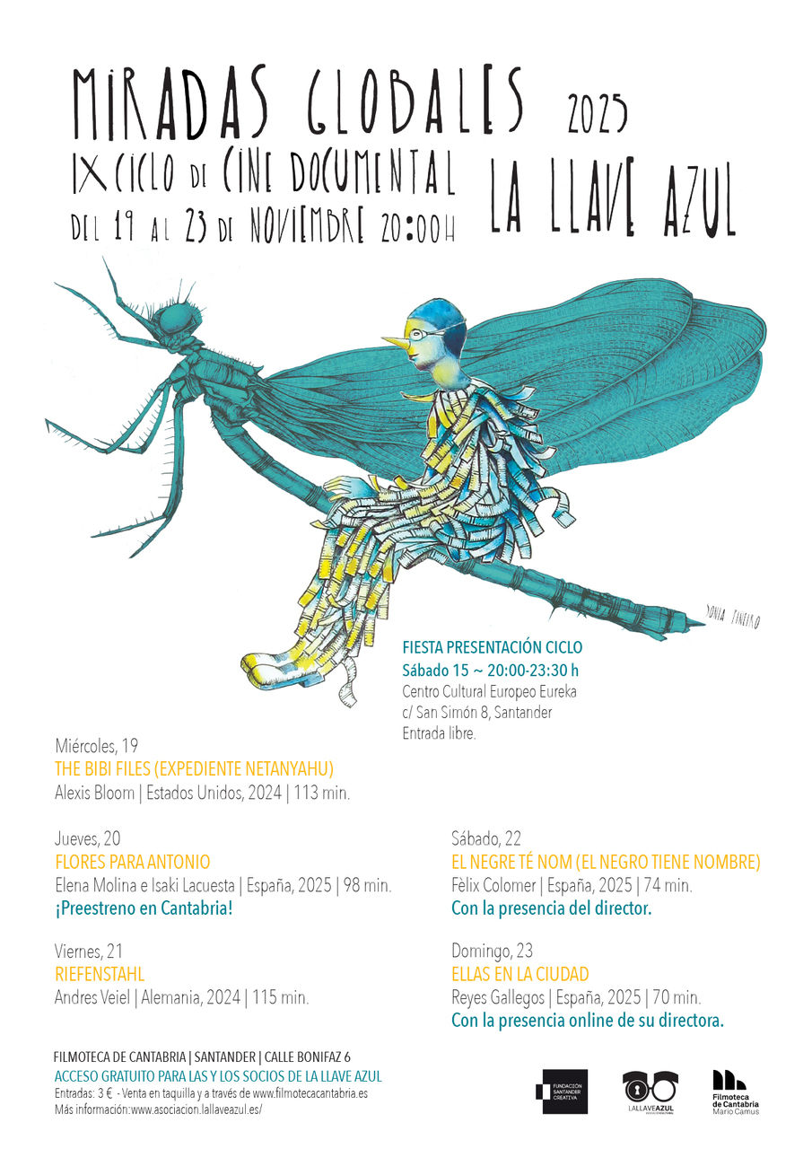 La novena edición del ciclo de cine documental “Miradas globales”, una iniciativa de la asociación La Llave Azul reconocida en la convocatoria de subvenciones públicas de la Fundación Santander Creativa (FSC), proyectará del 19 al 23 de noviembre en la Filmoteca cinco películas nunca antes vistas en Cantabria para que reflexionemos sobre cuestiones sociales, culturales y medioambientales a través del cine.