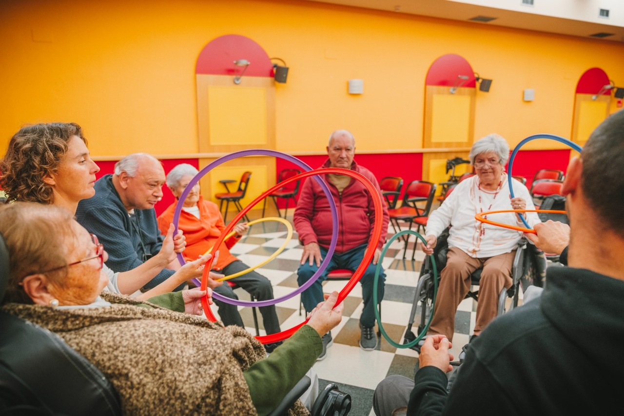 Así, se han creado espacios de juego y dinámicas usando, por ejemplo, la música para mover el cuerpo y ofrecer a los usuarios la posibilidad de abstraerse de los horarios y las directrices que rige la rutina de la residencia; permitiéndoles habitar espacios de ensoñación e imaginación y generando un estado de ánimo de alegría y relajación.