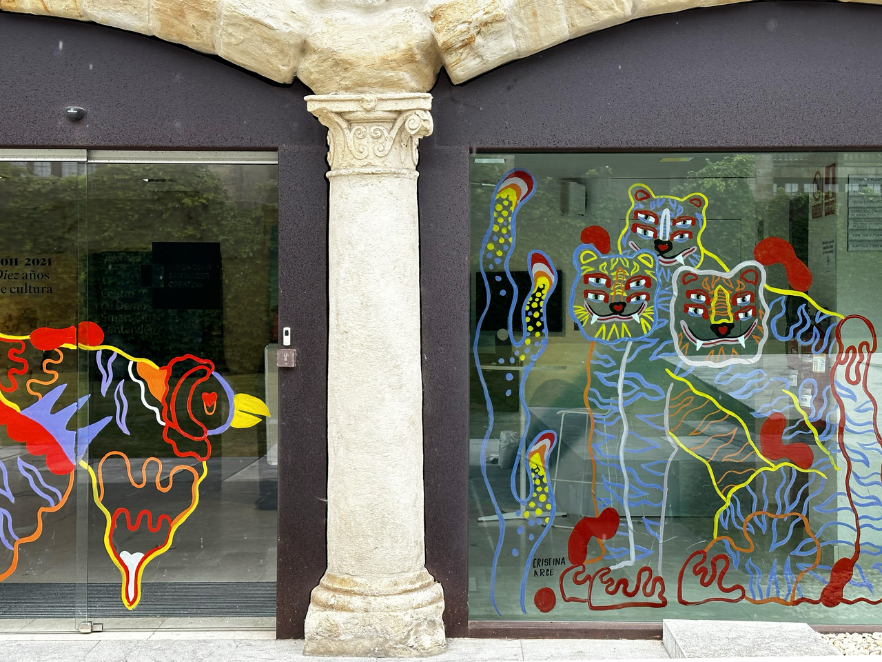 Arce ha estado pintando estos días la cristalera de acceso a Enclave Pronillo, la sede de la Fundación Santander Creativa (FSC), un espacio que también le ha servido para plasmar a través de su arte los problemas de género a los que ella misma, como cualquier otra mujer, tiene que hacer frente diariamente. Para ello, esta artista plástica ha recurrido a la naturaleza, la vegetación y en este caso, a la figura de la tigresa.