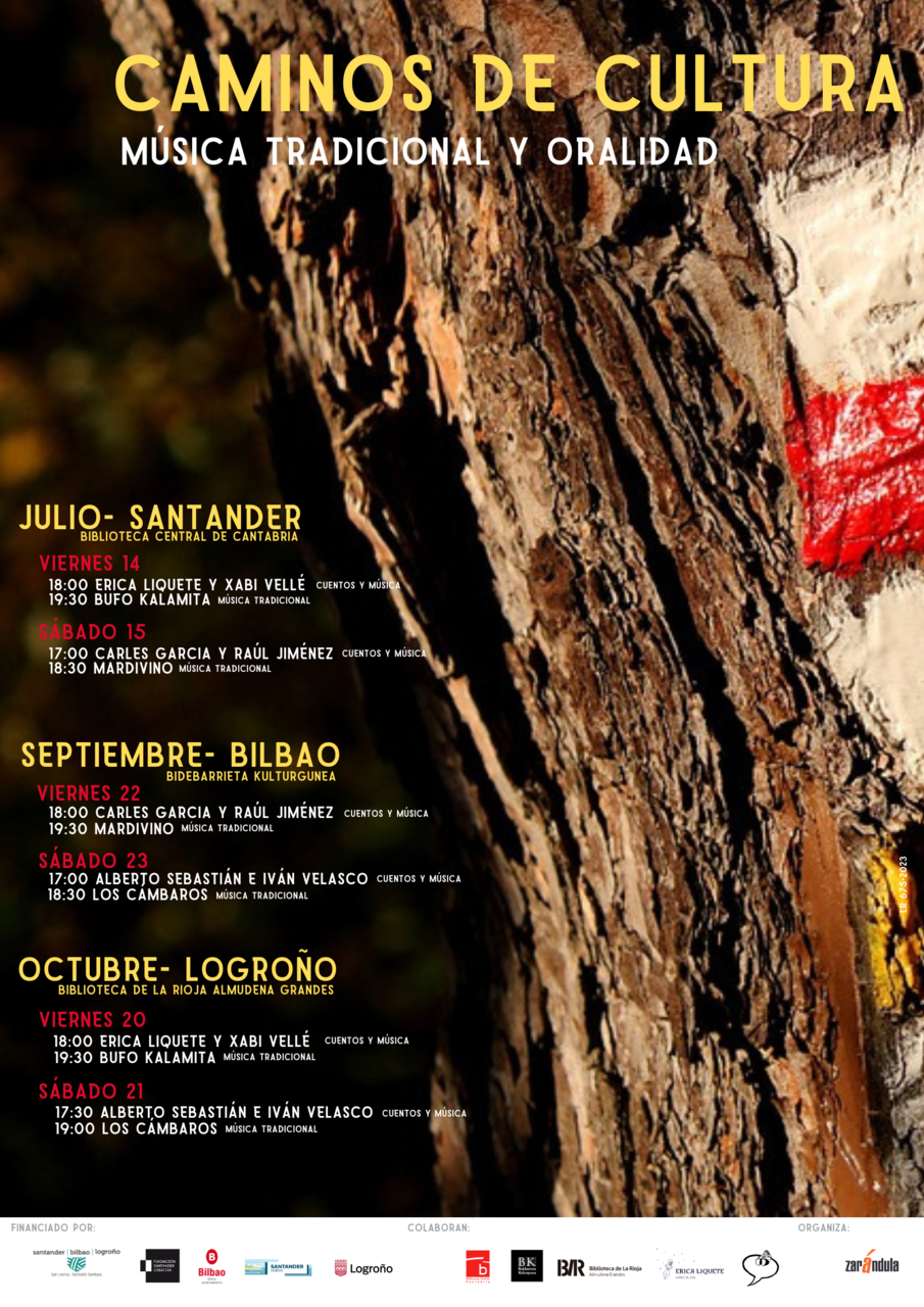 Impulsado por la empresa cultural Zarándula, de Logroño, en colaboración con los narradores orales Alberto Sebastián, de Santander y Erica Liquete, de Bilbao, “Caminos de Cultura” trata de reivindicar “la voz del pueblo”, las historias y las músicas que se quedaron por aquellos caminos. “Basándonos en esa idea de camino, pretendemos recuperar los vínculos culturales que surgieron en esos recorridos a través de la narración oral y la música tradicional”. Por eso, en cada ciudad actuarán narradores orales y una agrupación musical procedentes de las otras urbes restantes.