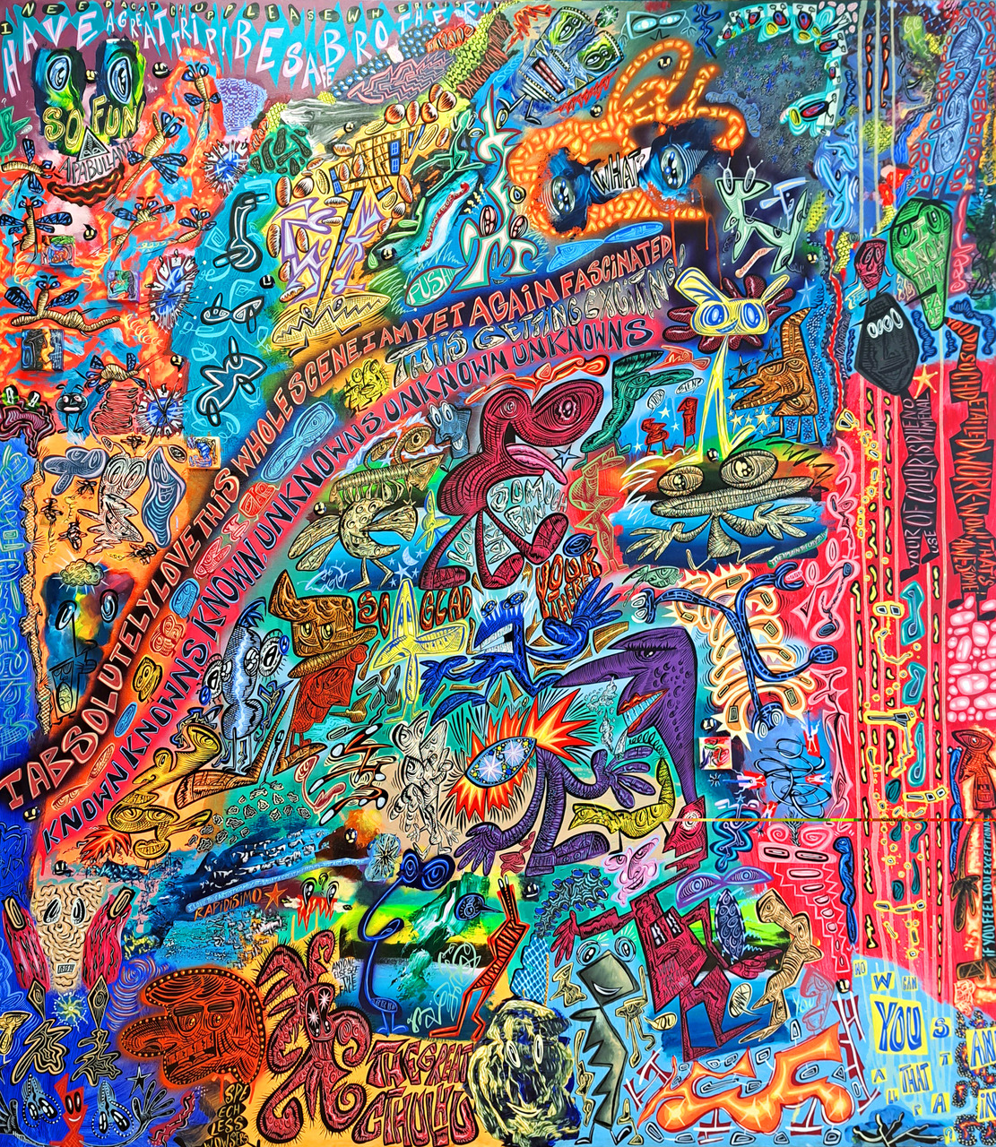 Desde formulaciones plásticas dispares, el concepto que manejan ambos artistas muestra su intersección no solo en el carácter abigarrado de sus imágenes, sino también en la certeza de transformar estímulos, instantes y vivencias desde una relación desinteresada con el medio por el mero placer de proyectar sus pensamientos en pintura. Ambos comparten un imaginario barroco y colorido donde la experimentación se alía con el juego en un acto de gestualidad radical, independiente. Como una imagen que se piensa a sí misma.